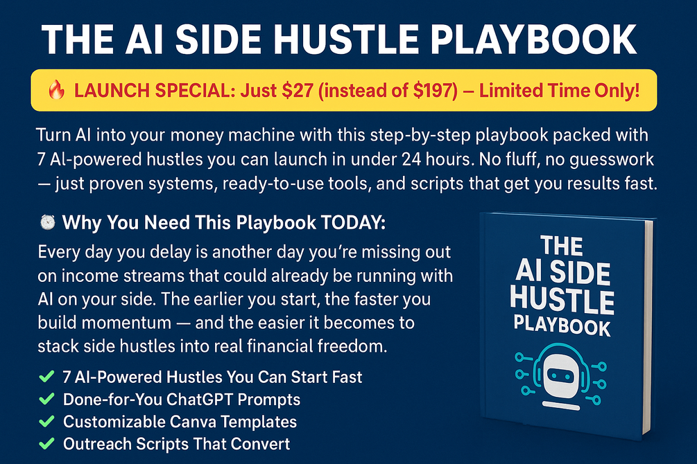 Turn AI into your money machine with this step-by-step playbook packed with 7 AI-powered hustles you can launch in under 24 hours. No fluff, no guesswork — just proven systems, ready-to-use tools, and scripts that get you results fast.
