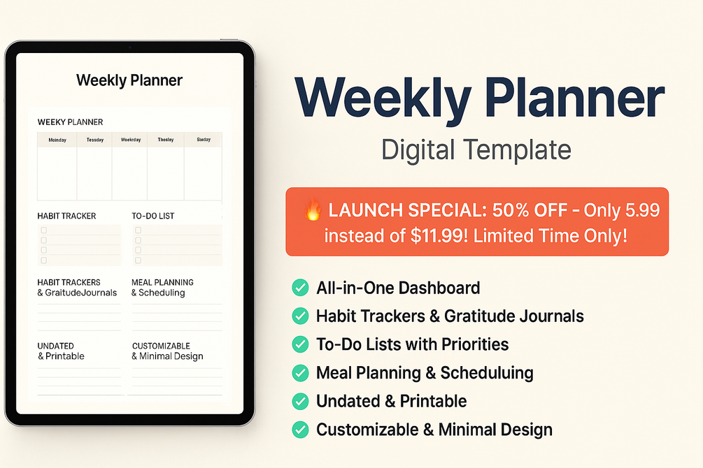 Struggling to stay organized and keep up with life’s endless to-do lists? You’re not alone. Most people waste hours every week just trying to figure out what to do next. The Weekly Planner V2 is your all-in-one digital solution to finally take back control of your time, energy, and priorities.